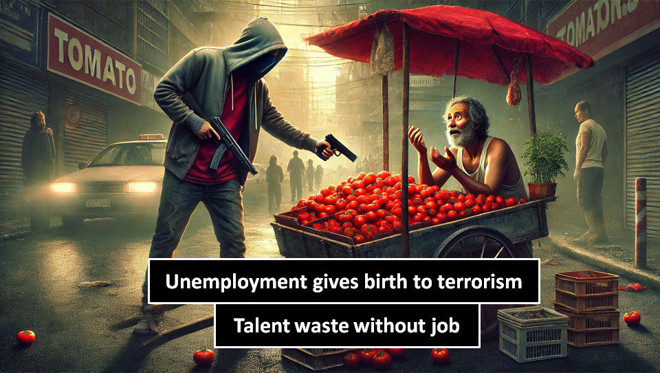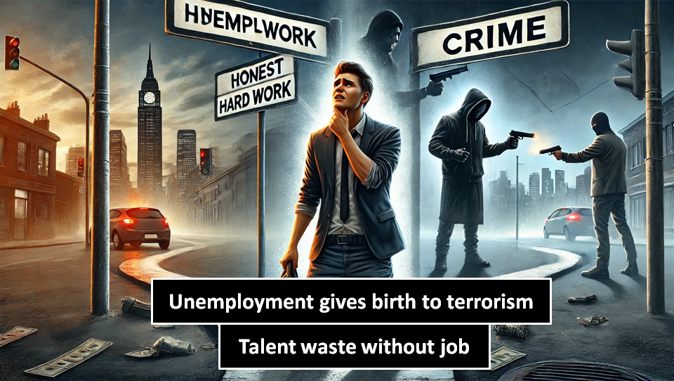 People who are simple take up a small job so that they can earn their livelihood. Some people, fed up with the circumstances, choose the wrong path. They commit various kinds of crimes. The root of all this is unemployment. There is no dearth of talent among the youth in India, but due to not getting the right platform, all the talent is wasted.