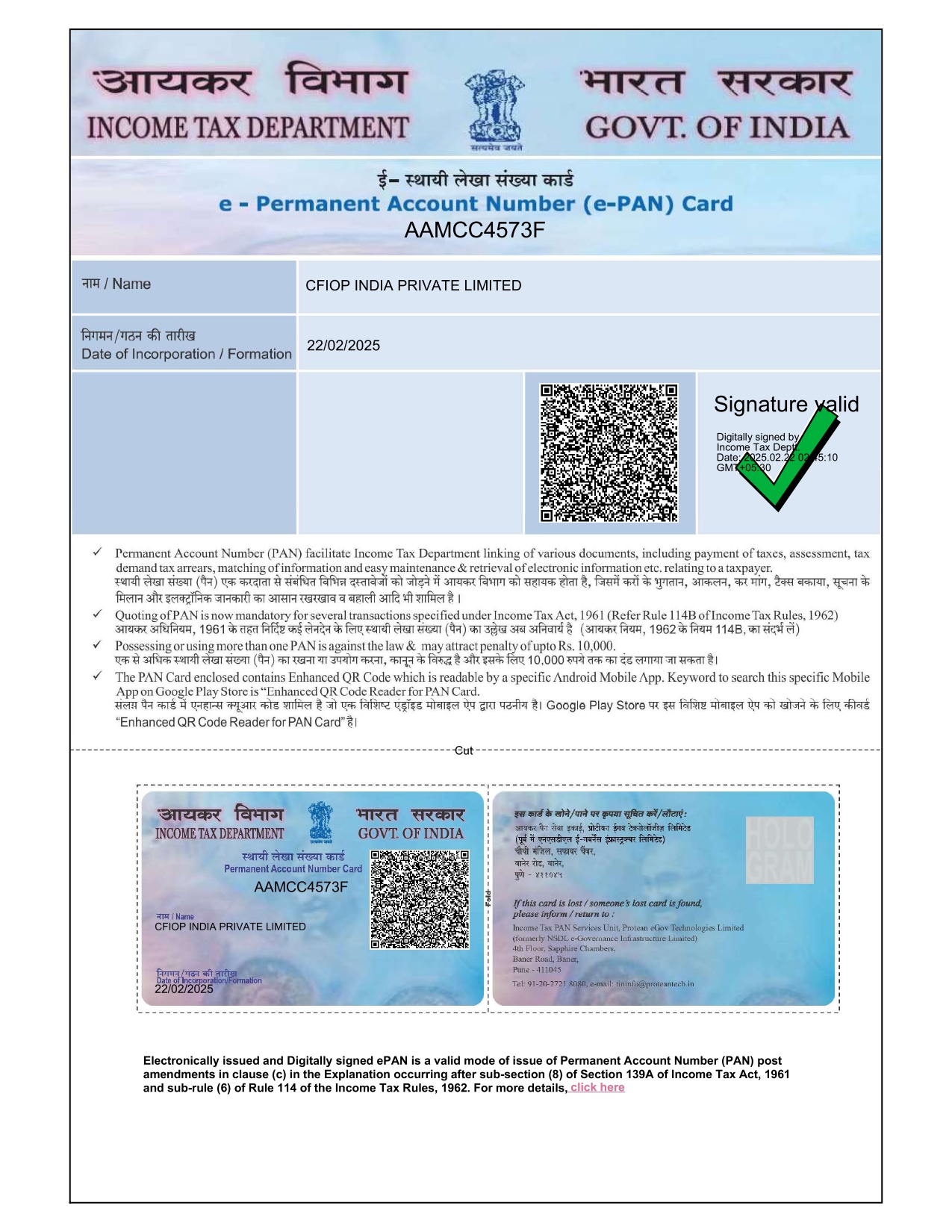 Company Pan Card of CFIOP India Private Limited